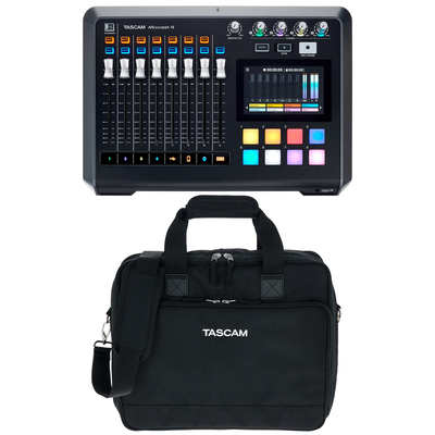 De Tascam Mixcast 4 Bag Bundle is de ultieme oplossing voor podcasters en livestreamers. Met 14 ingangen, 4 microfooningangen met automix-functie en 8 verlichte triggerpads, creëer je moeiteloos professionele audio. Het 5″ touchscreen en de Bluetooth-connectiviteit maken het gebruik eenvoudig. Inclusief een stevige transporttas voor al je accessoires. Perfect voor elke opnameomgeving!